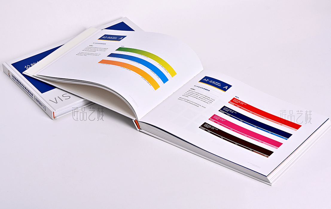 VI手册的方脊精装方式,每一页都透露着品牌的严谨与精致,